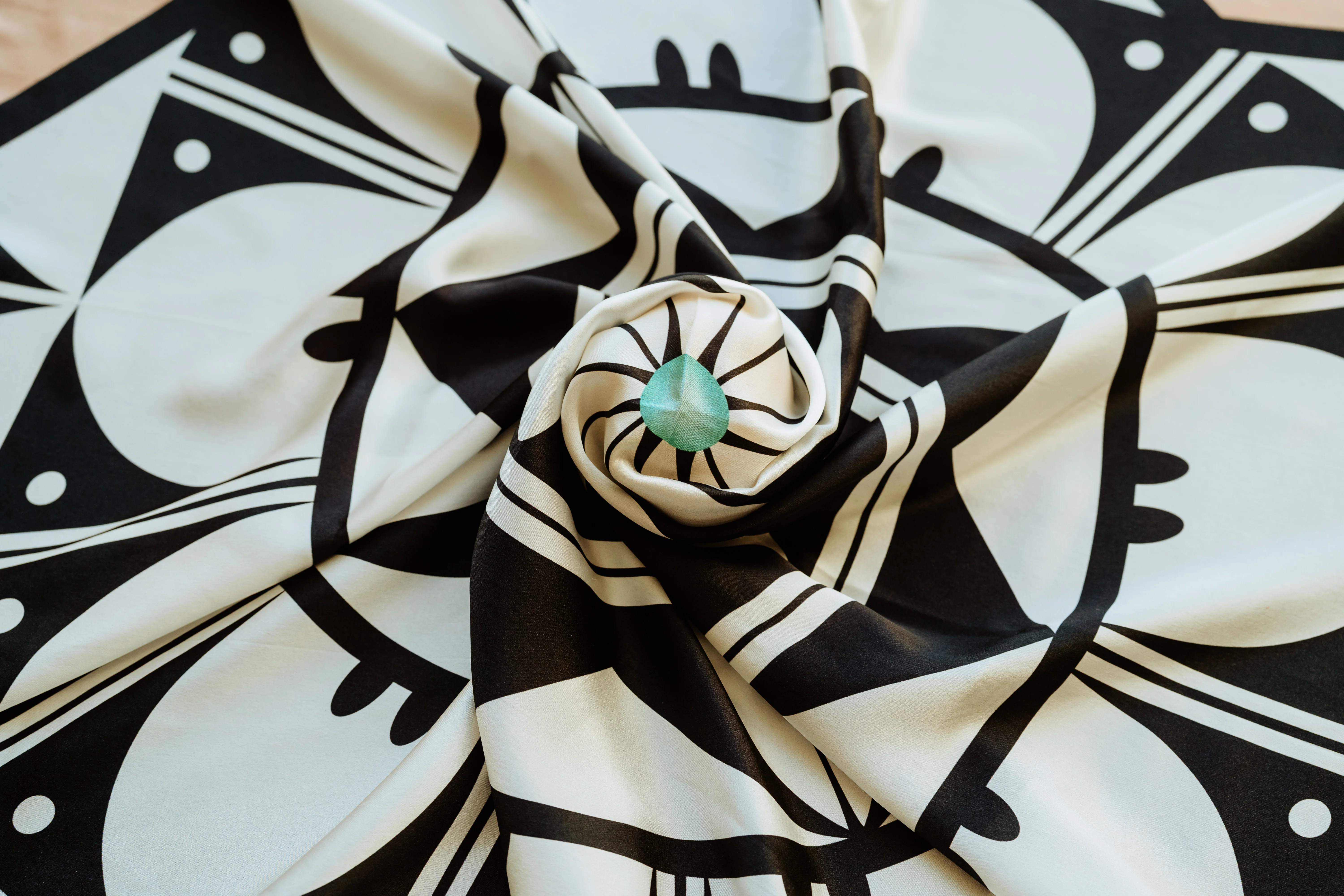 The Balance Silk Scarf is influenced by Acoma pottery, which traditionally reflects patterns and designs found in nature, and represents the balance we all strive for. This beautiful design also embodies the aspiration we have to be more intentional with choices in our lives.