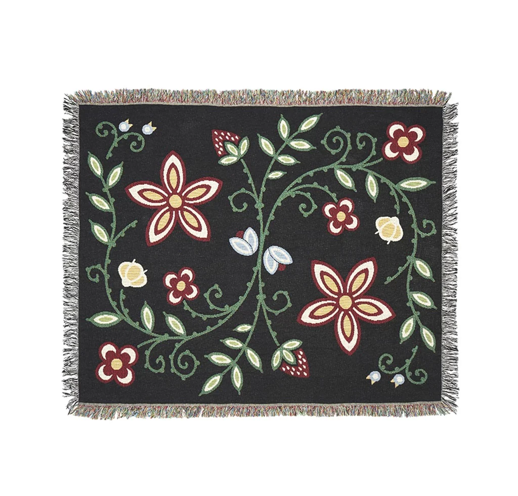 The Classic Woodland Throw Blanket was designed by Inspired Natives® Project collaborator Sarah Agaton Howes (Anishinaabe), who is known for her beautiful bead work, moccasins and regalia. With this design, she intends to remind us of the beauty and reinvigorating energy of spring time.