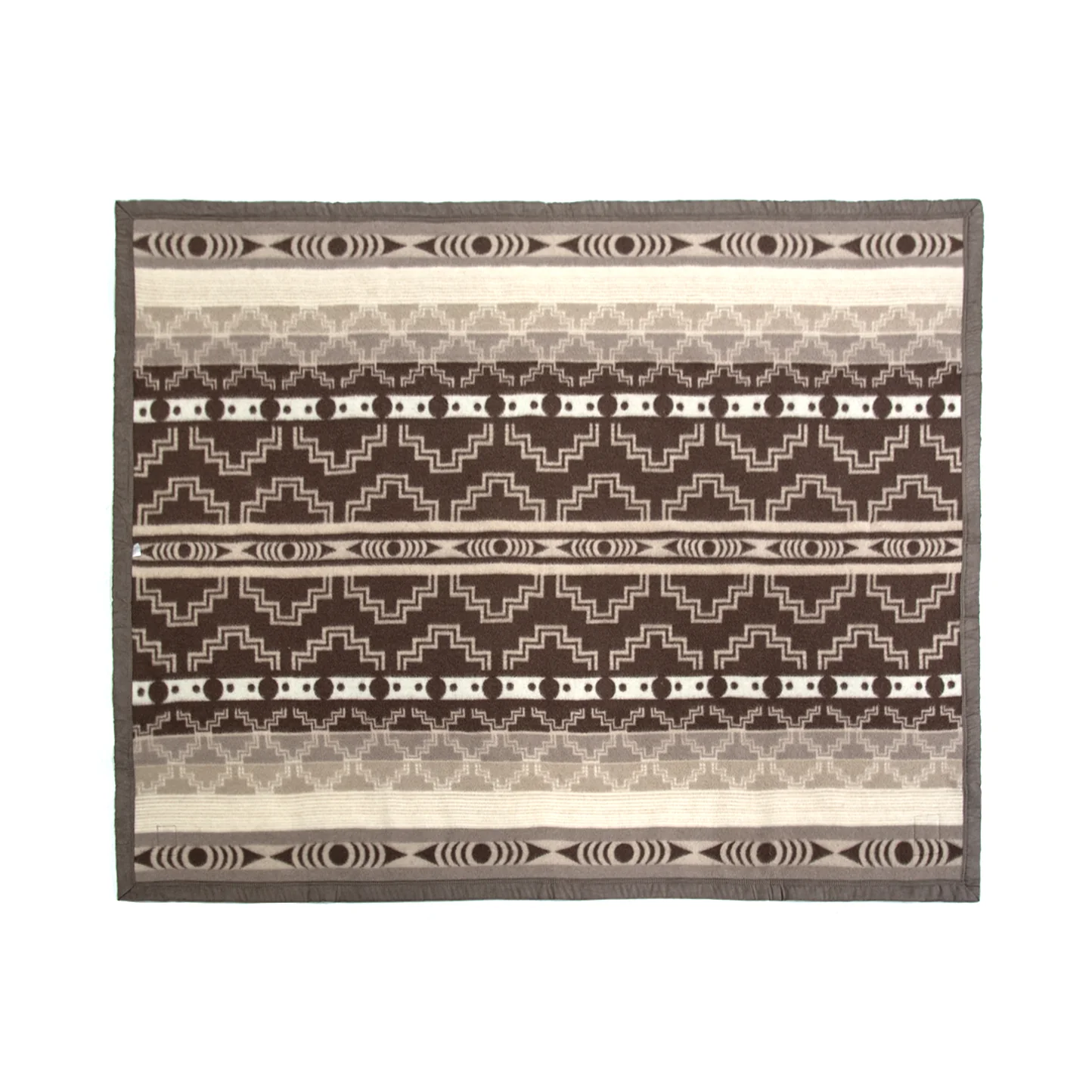 These blankets were designed with wrapping, gifting, and honoring in mind. The meeting of the design from each side to the other will speak to the continuous quality of time and intergenerational connection through time. The intentional colors of the blanket reflect the use of natural plants, dyes, and materials used by traditional artists. This design speaks to Snoqualmie Tribe's collective past, present and future. We are excited to share a piece of Snoqualmie art made for you and your home!