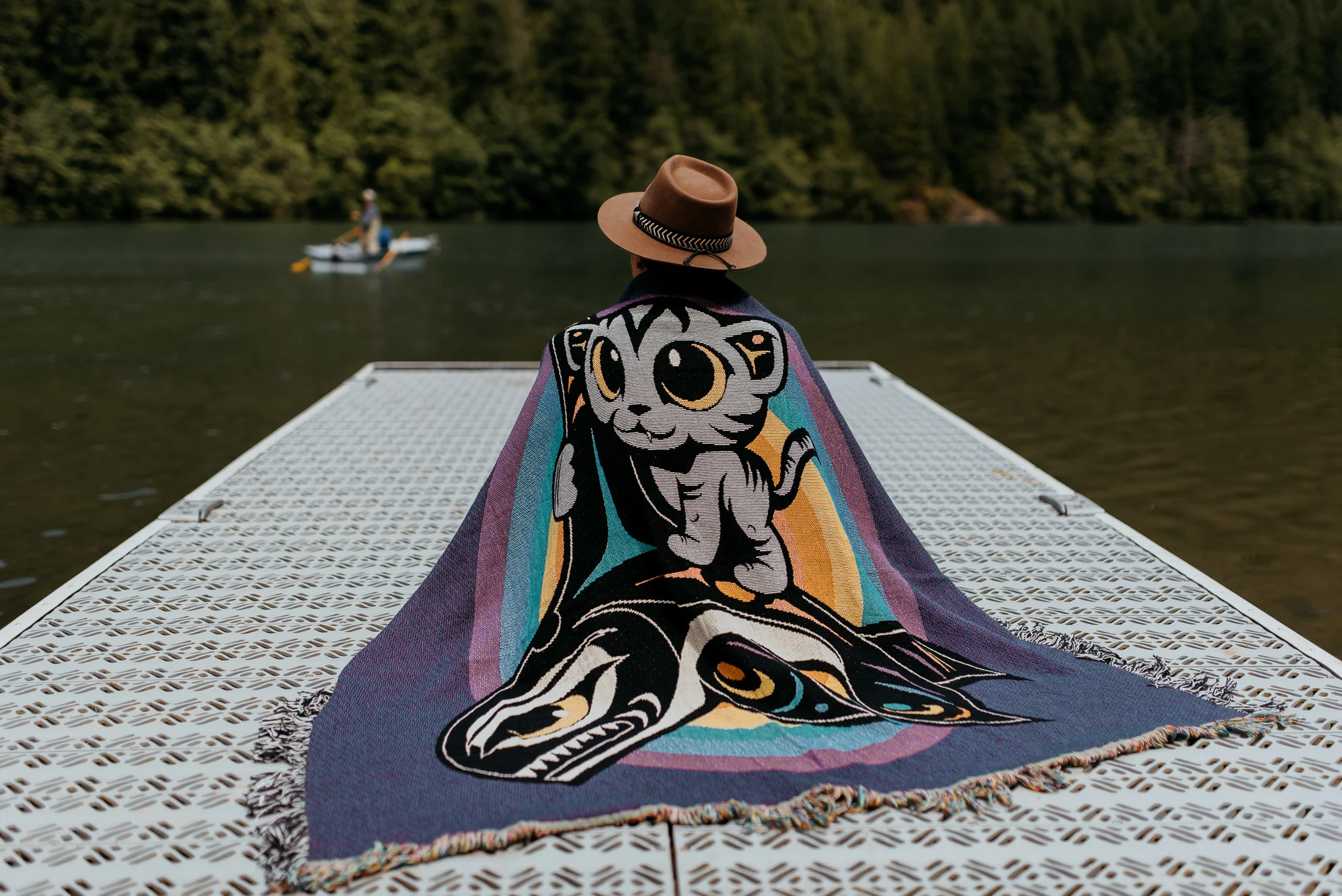 The fun "Follow Your Dreams" woven tapestry blanket features Rez Cat (Louie's cat) riding KW (an Orca). If there's anything better than a cute kitten illustration, it's an illustration of a cute kitten and a killer whale working together to follow their dreams!