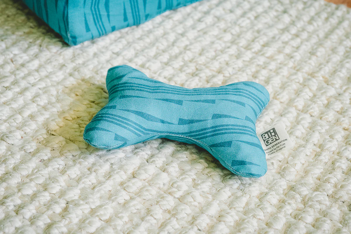 Our Lightning And Thunder Squeaky Toys are sewn and assembled by the Seattle-based nonprofit Refugee Artisan Initiative (RAI). BIPOC-founded and women-run, RAI partners with refugee and immigrant women for an inclusive, prosperous transition to the United States job market through skill training and business development. The beds and toys they produced for this product line are filled with Eighth Generation’s textile scraps, keeping waste from landfills and giving these scraps a second life. That means each pet bed provides jobs and training, reduces waste, uplifts a Native artist, and supports our small, tribally-owned business. Now that’s something to set tails wagging!