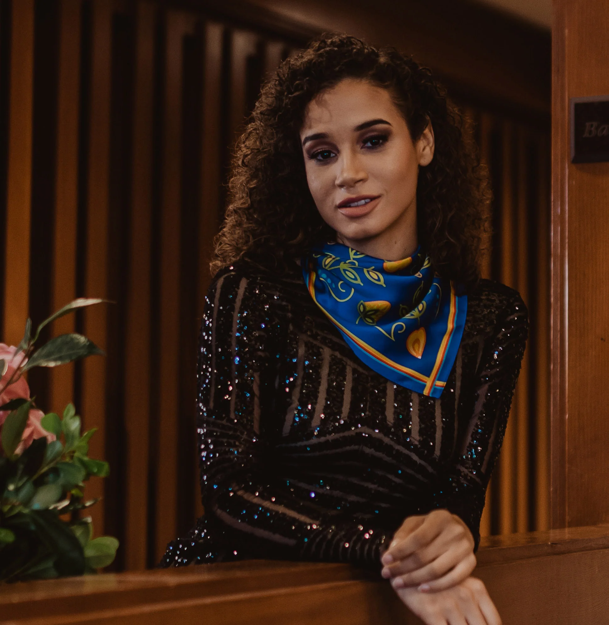 This 100% silk scarf was designed by Sarah Agaton Howes (Anishinaabe) in collaboration with Eighth Generation’s Inspired Natives® Project.