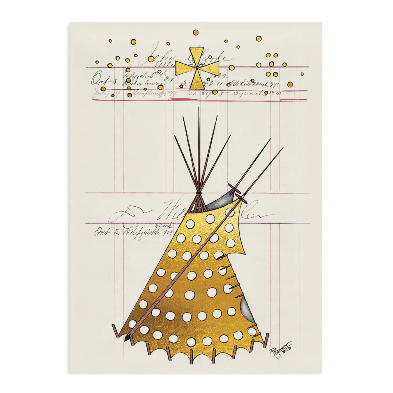 - Pawnee Sky Map (with gold foil) x 4 by Colleen Echohawk (Pawnee, Athabascan)